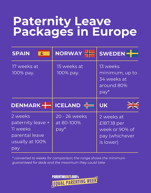 With the advent of the Employment Rights Act, it’s worth looking widely at parental leave. Did you know that there is an Equal Parenting Week from 27th April to 3rd May? Further investigation reveals that the paternity leave both in terms of time off, and money, in the UK does not compare favourably with many other European countries, where both the time off and the pay is considerably higher.